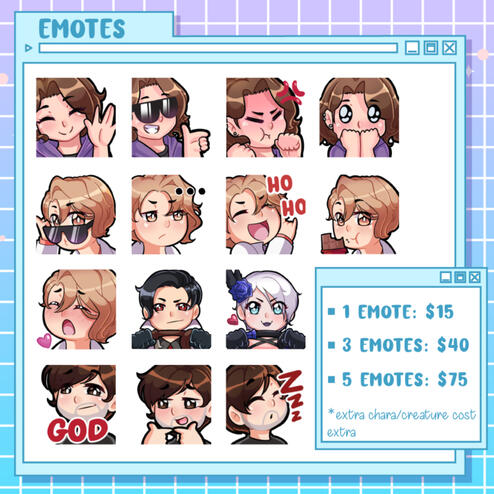 - Comissions include a solid color or transparent background.